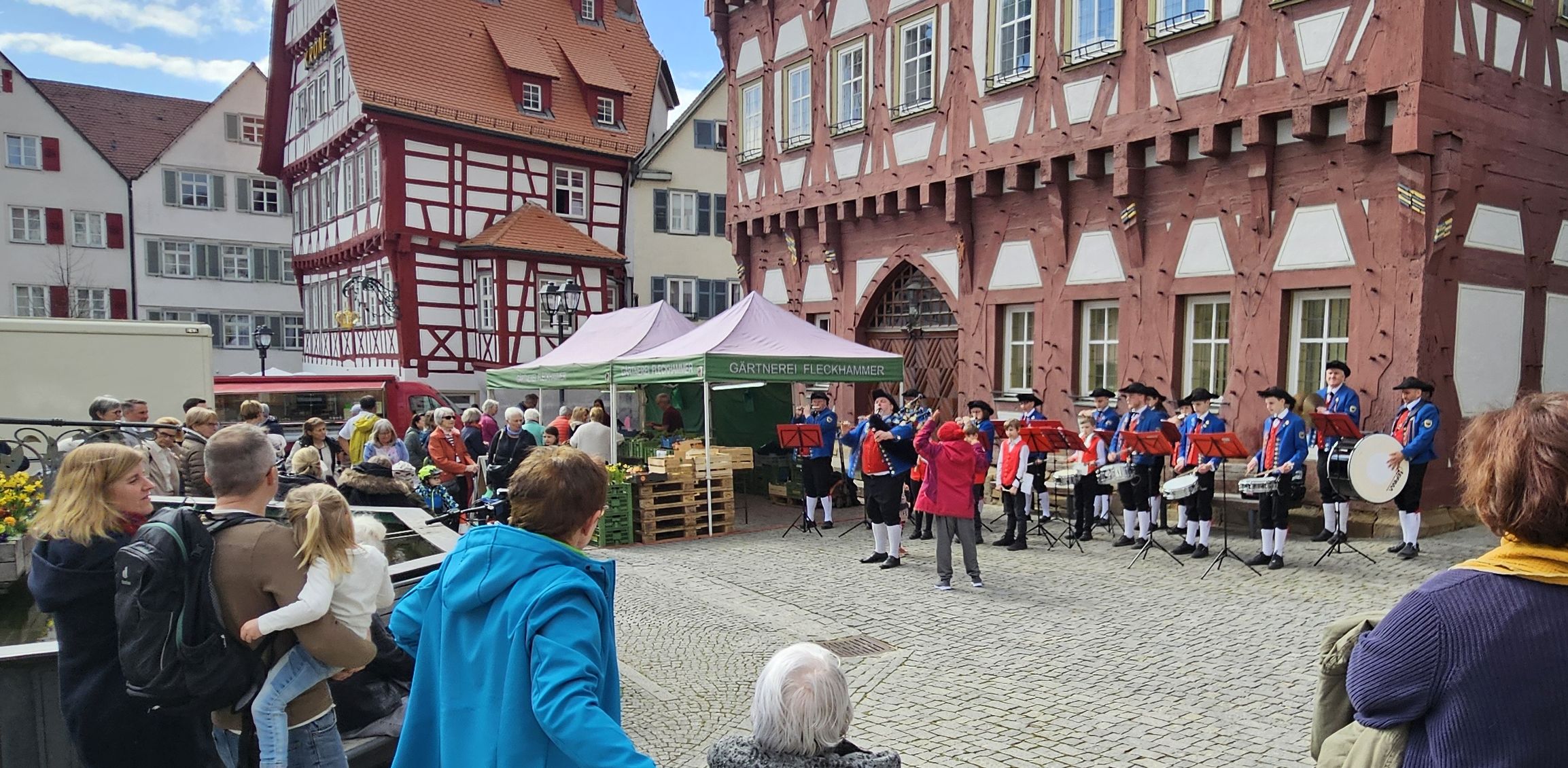 Die Klänge des Spielmannszuges Markgröningen unterbrachen am 22.3.2025 gegen 11 Uhr das Marktgeschehen auf dem Marktplatz in Markgröningen und lockten viele Besucher an. Der Spielmannszug Markgröningen kann in diesem Jahr auf sein 100-jähriges Bestehen zurückblicken und eröffnete das Festjahr mit einer Ausstellung im Rathaus.
