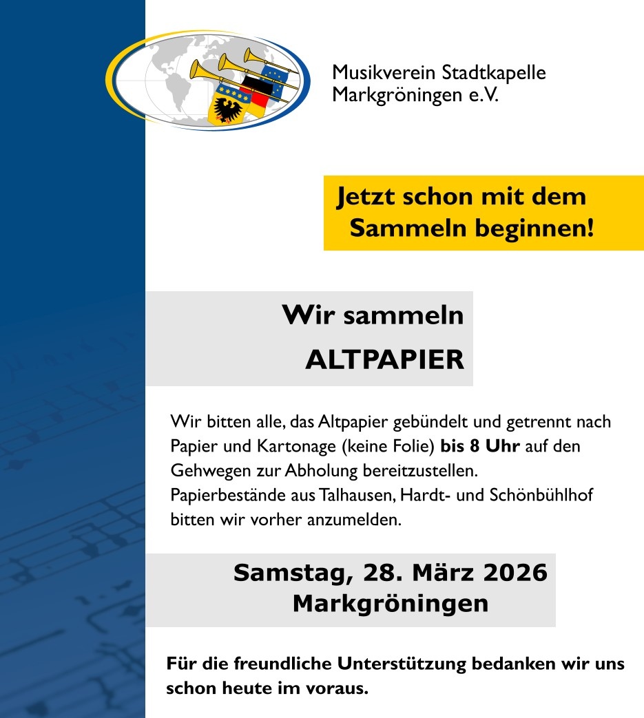 Die musikalischen Abteilungen (Blasorchester, Spielmannszug, Fanfarenzug) des Musikvereins laden alle Interessierten herzlich zu offenen Proben ein.
